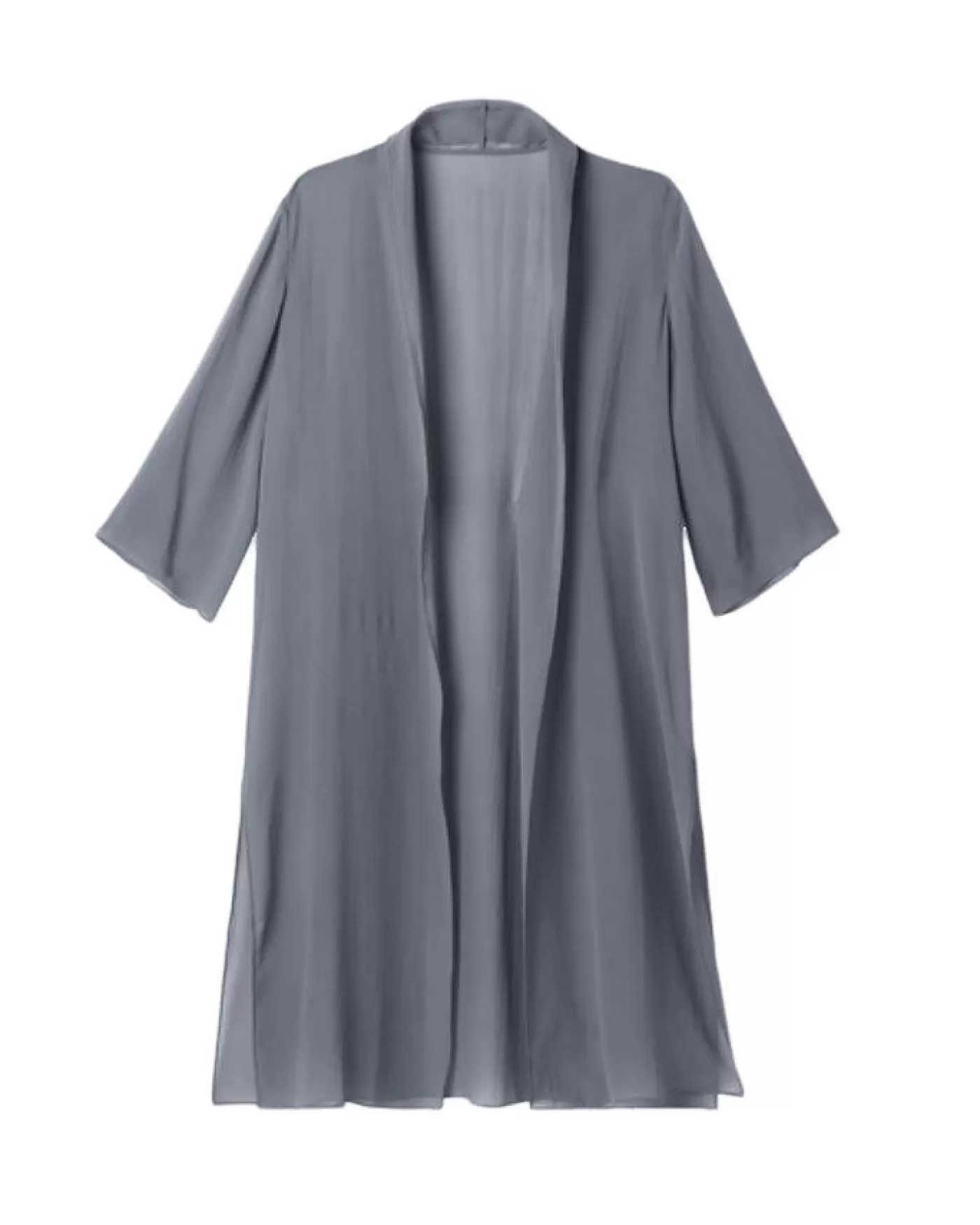 Be the first to review “Eileen Fisher Sheer Silk High Collar Long Jacket STEEL Clearance” Cancel reply