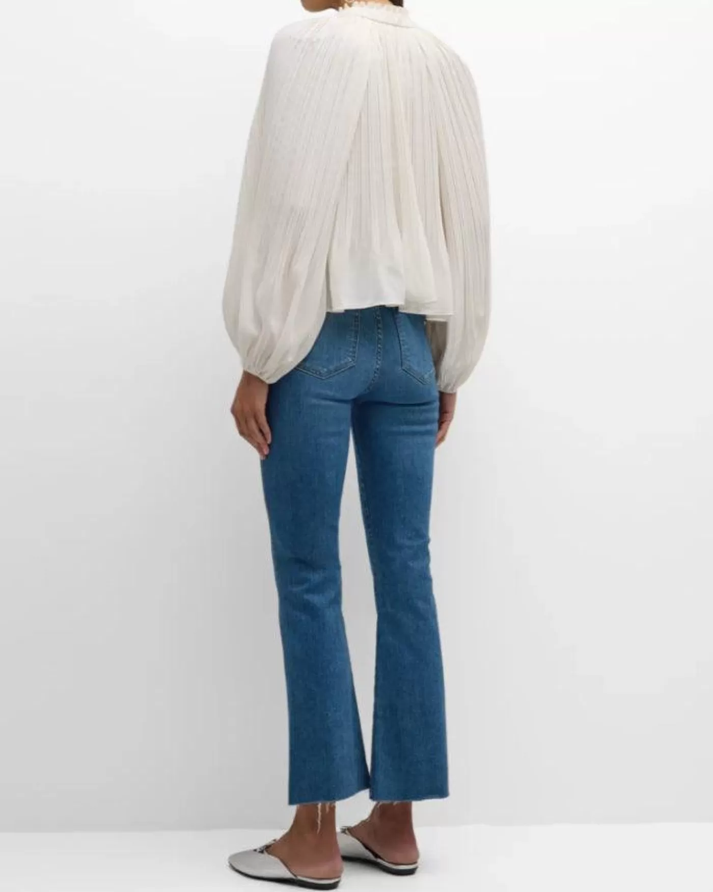 Veronica Beard relaxed fit allover accordion pleats define the Walker top, which features airy blouson sleeves and a ruf…
